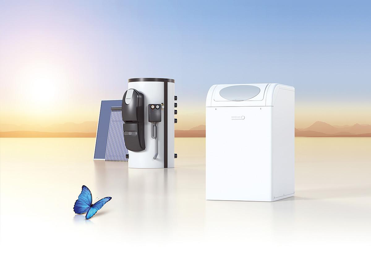 Auch eine Ölheizung kann zur Senkung von Verbrauchskosten und Klimaauswirkungen mit einer Solarthermieanlage kombiniert werden. Mit ihr wird kostenlose Sonnenenergie in Wärme umgewandelt, die sowohl zur Warmwasserbereitung als auch zur Heizungsunterstützung genutzt werden kann. Intelligente Öl-Brennwertsysteme schalten auf Heizen mit Öl um, wenn die Solaranlage nicht genügend Energie in das System einspeisen kann. Eine optimale Raumtemperatur ist somit jederzeit sichergestellt.